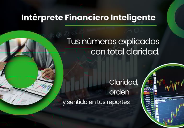 Intérprete Financiero es un asesor financiero virtual, un chatbot inteligente entrenado por expertos en finanzas para traducir tus reportes financieros a un lenguaje claro y sin tecnicismos.